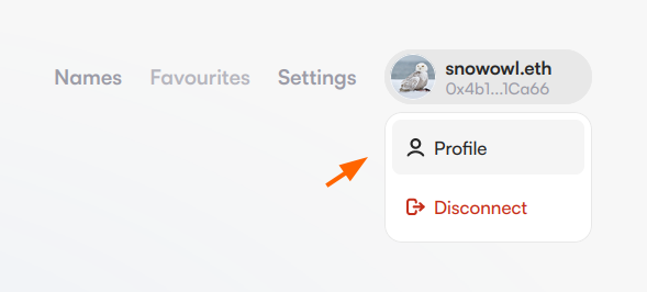If you click it, you'll get a sub-menu where you can go to your Profile which shows your avatar as well as other information set on your ENS name.