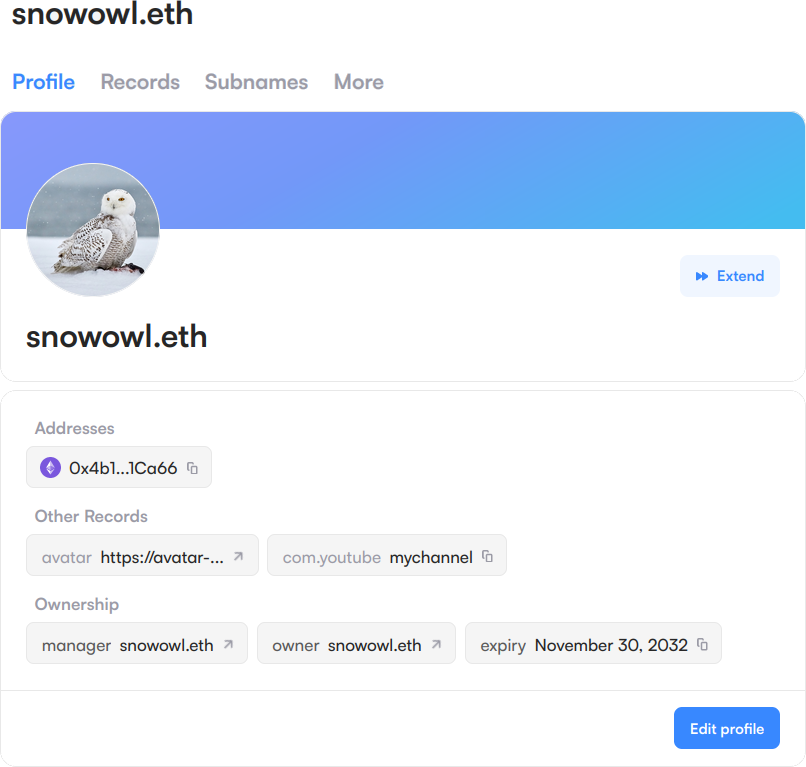 The avatar record allows you to select a custom background image for your ENS name metadata to display in services that support it.