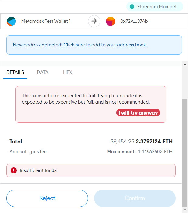 This can be solved by transferring more ETH into the wallet to cover the actual transaction cost which should be a lot less than what Metamask shows when it's encountering this bug.