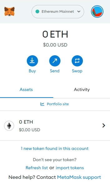 You will see a notification that Metamask has found a new token for the wallet. Next, click Import.