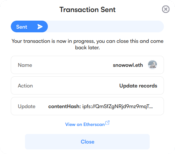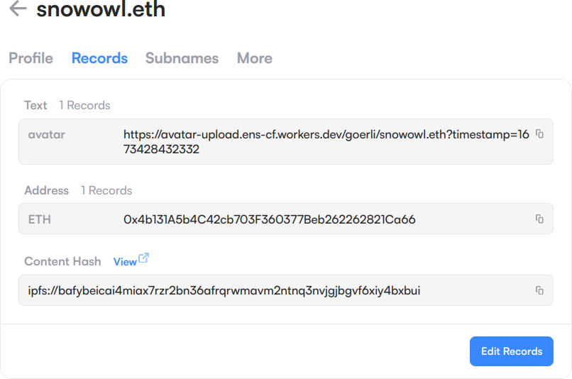 You should now see the Content Hash record populated with the IPFS CID you entered.