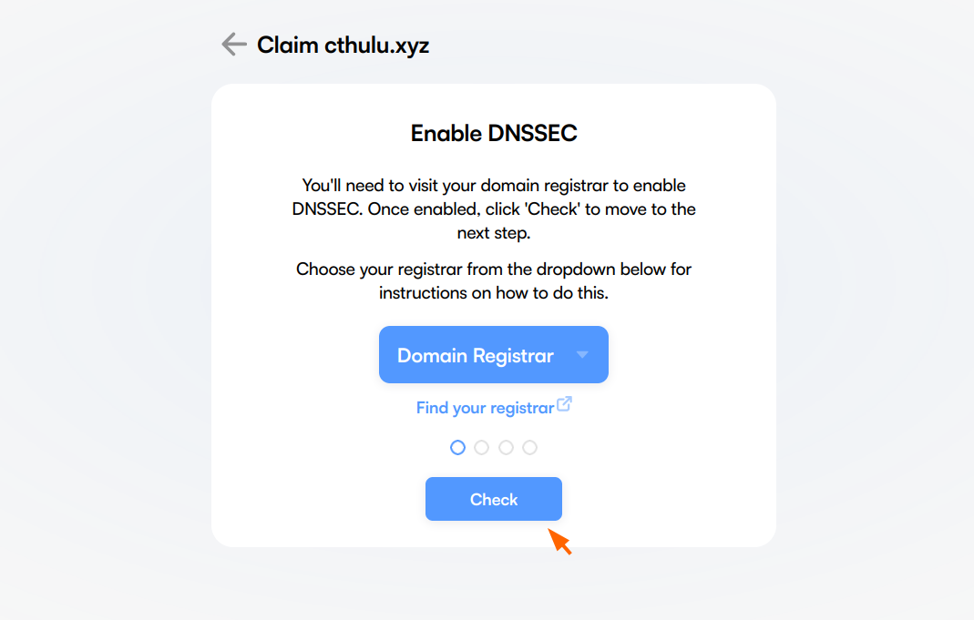 Before we can integrate an existing DNS domain name with ENS we'll need to enable DNSSEC for it to establish a chain of trust between the domain name and ENS.