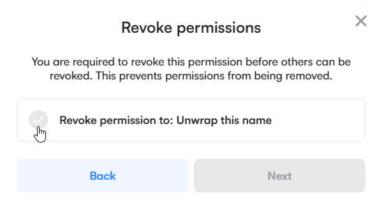 If you only want to Lock the name, then you can click Skip. Otherwise, select the permissions you want to revoke, and click Revoke to move to the next step: