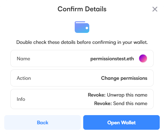 For example, if you want to make the wrapped NFT non-transferrable, then you can revoke the "Send this name" permission.