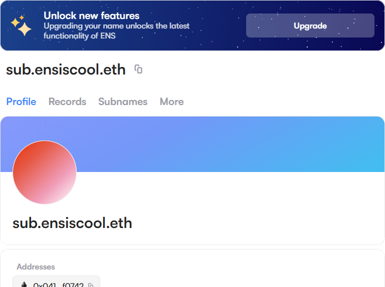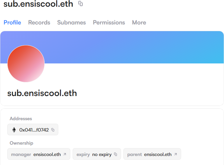 Now that your name is wrapped, any subnames you create under this name will now automatically be wrapped as well.