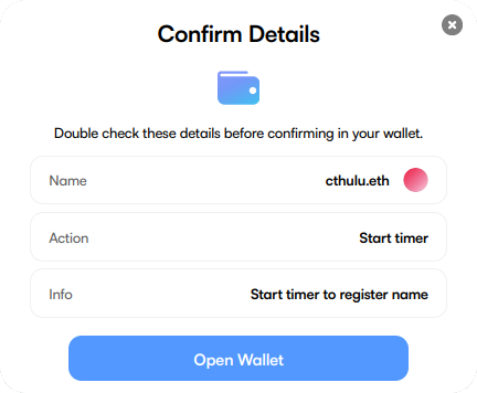 • You have 7 days to complete Step 3 before the Request to Register transaction expires. However, the ENS name is not reserved for you during this time.