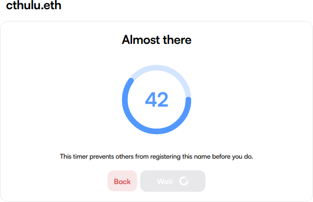 After the Step 1 transaction completes there's a 60-second waiting period to prevent front running.