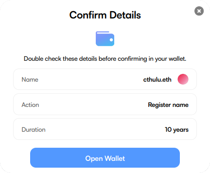 Now it's time to Register your ENS name. Click the register button and confirm the transaction in your wallet.