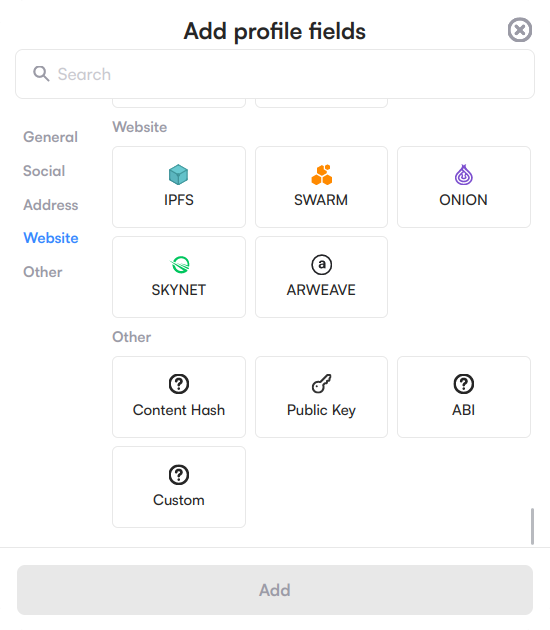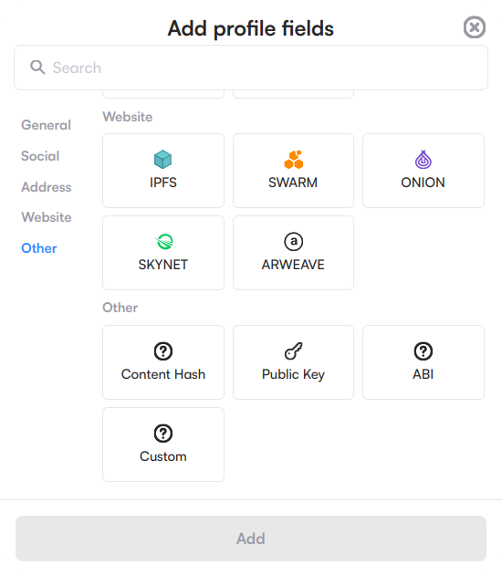 By selecting Edit Profile during the registration process you can set multiple records in the registration transaction. See the corresponding tab below to see what records you can set, or skip ahead to Registering your ENS name