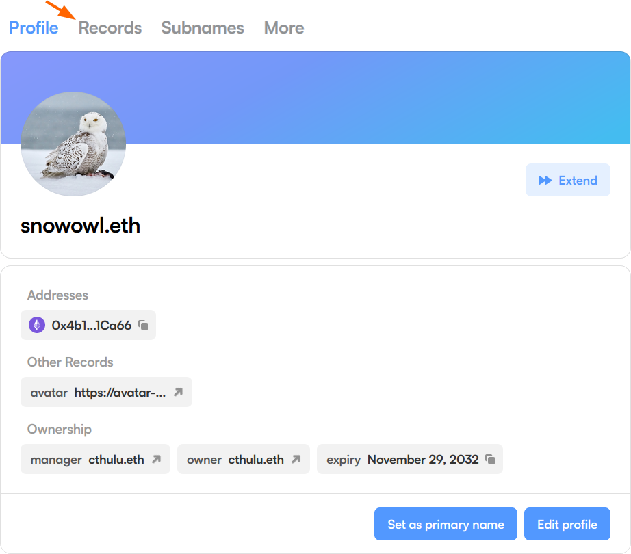 Go to the ENS Manager App with the wallet set as Manager for the ENS name you want to manage and click Names to bring up a list of your ENS names or search for an ENS name you own directly from the main page.