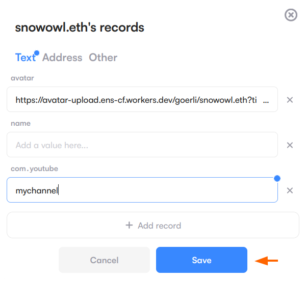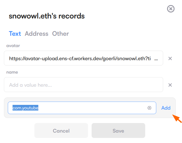 In the new field that appears, type in the name of your Custom Record. Records traditionally use a reverse notation, e.g. com.youtube for youtube.com and then click Add