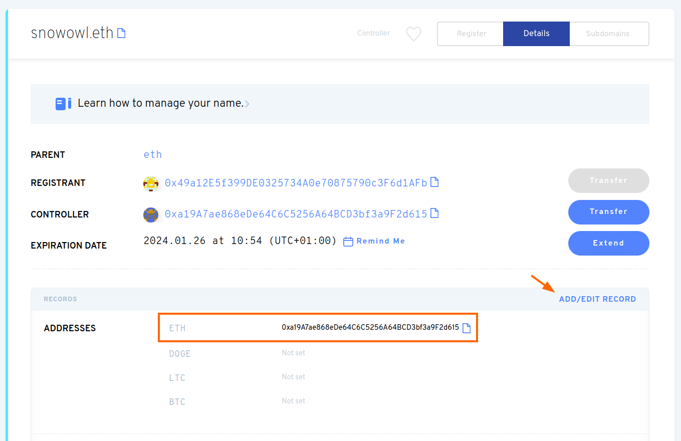 In this tutorial you will learn how to add a wallet address to your ENS name.